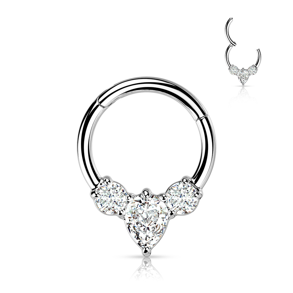Κρίκος με μεντεσέ από χειρουργικό ατσάλι με πετράδι σε σχήμα αχλάδι στο κέντρο