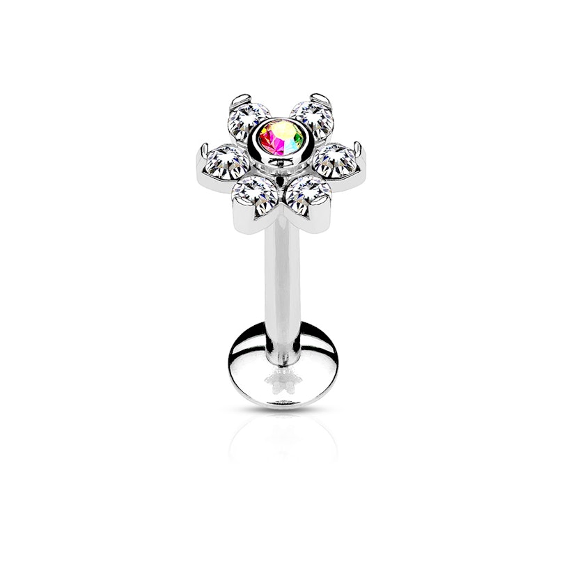 Labret με εσωτερική ράβδο και λουλούδι φυλαχτό στην κορυφή