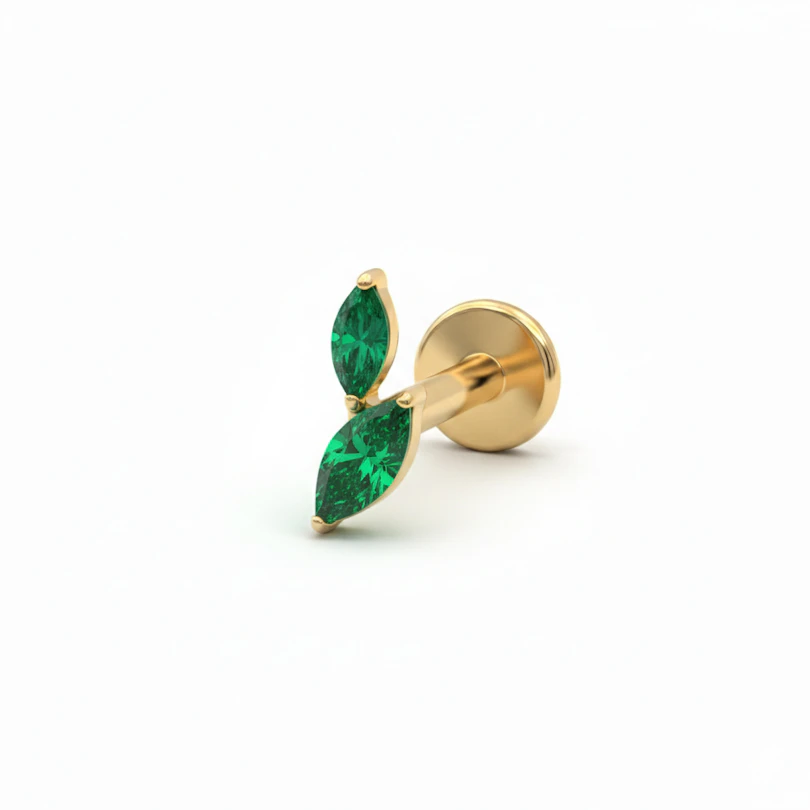Αυτό το labret τιτανίου με δύο πετράδια σε marquise κοπή είναι η απόδειξη ότι το λιγότερο μπορεί να κάνει περισσότερα. Οι δύο επιμήκεις κοπές κάθονται μαζί σαν κομψά φύλλα ή φτερά, δίνοντας στο αυτί σας την κατάλληλη ανύψωση χωρίς να κλέβουν την παράσταση.