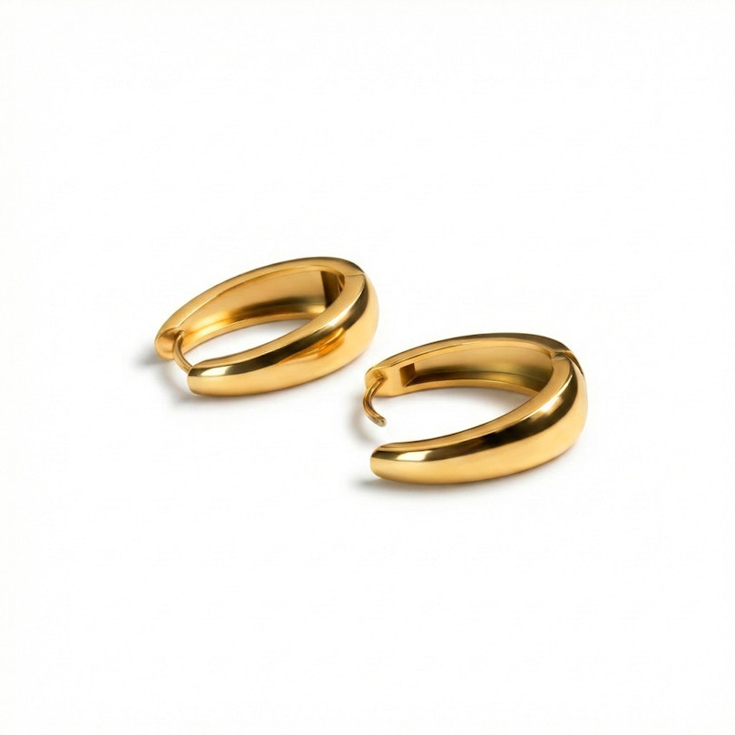 Αναζητάτε τολμηρούς κρίκους; Γνωρίστε αυτό το ζευγάρι οβάλ σκουλαρίκια κρίκους. Κατασκευασμένα από σκληρό χειρουργικό ατσάλι, μπορείτε να τα αποκτήσετε σε κλασικό ασημένιο ή χρυσό φινίρισμα. Ο μοναδικός οβάλ σχεδιασμός τους είναι διακριτικά πιο φαρδύς στο κάτω μέρος, δίνοντας στην εμφάνισή σας μια νέα πινελιά. Επιπλέον, το εύκολο κούμπωμα με μεντεσέ σημαίνει ότι φοριούνται πανεύκολα. Πωλούνται ως ζευγάρι και είναι έτοιμα να αναβαθμίσουν αμέσως το ear game σας.