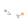 This titanium labret features 3 CZ stones arranged to form a heart shape. The top two stones are round and the bottom is square. It is internally threaded and available in a choice of gold or silver finishes. This cute piece will look great in a range of ear piercings. It measures just 5 mm at its widest point. The flat back ensures comfortable wear.