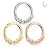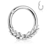 This is a surgical steel hinged ring, with leaves that emerge from the lower part of the ring and extend to the sides. They don't go all the way around because it would be almost impossible to wear in that case.