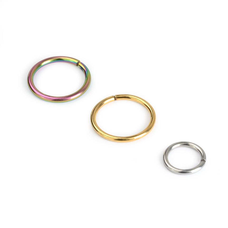 With this seamless ring, it will be easier to insert the ring into your piercing. The circle consists of a single piece of metal with a small opening. To open the ring, you only have to twist the ends in opposite directions like a spiral - do not pull them apart sideways. Slide it into your piercing, and the ring will close when you release it. Note that the ends of smaller models may be sharp when they're open.