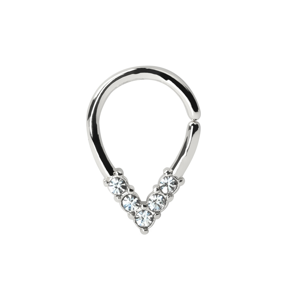 This seamless twist ring is in a teardrop shape, with 5 delicate stones decorating the front of the piece. Being made from surgical steel, this ring is strong and won't lose it's shine. It is available in a choice of 1 mm and 1.2 mm thread thicknesses, meaning it can be worn in a range of piercings, including but not limited to: septum, tragus, and helix.