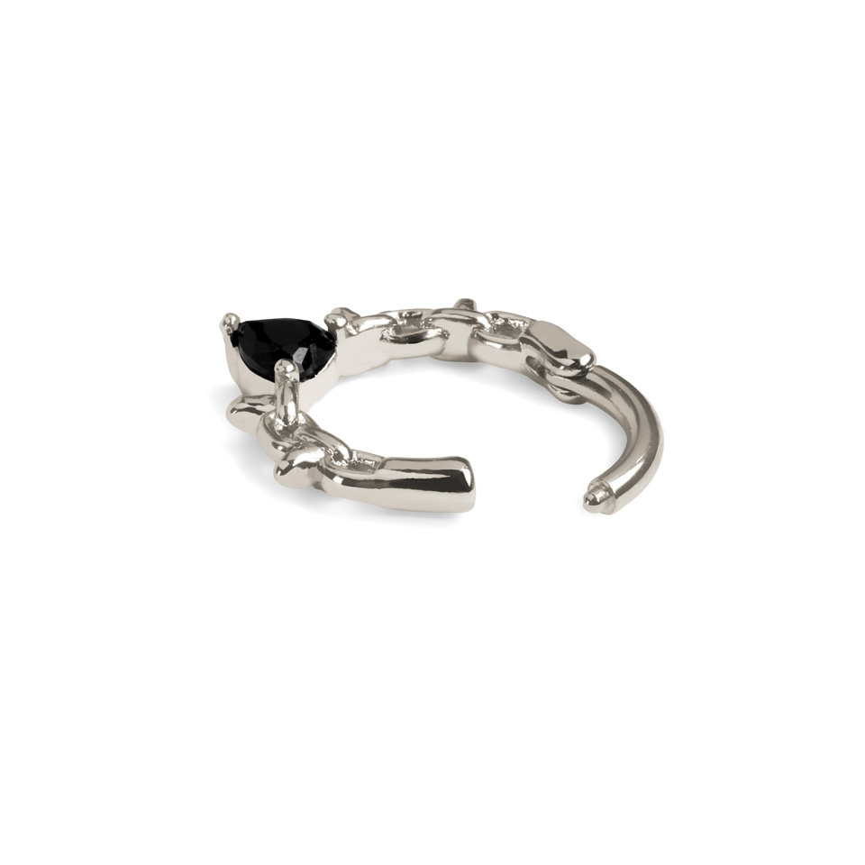 Ova karika ima dizajn bodljikave žice s crnim središnjim kamenčićem u obliku srca. Vrlo ju je lako umetnuti u piercing jer se kopča na šarnir.