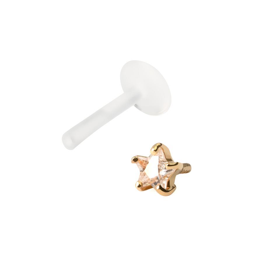 Naziv: Labret od 14K zlata s kamenčićem u obliku zvijezde i iglom od PTFE-a