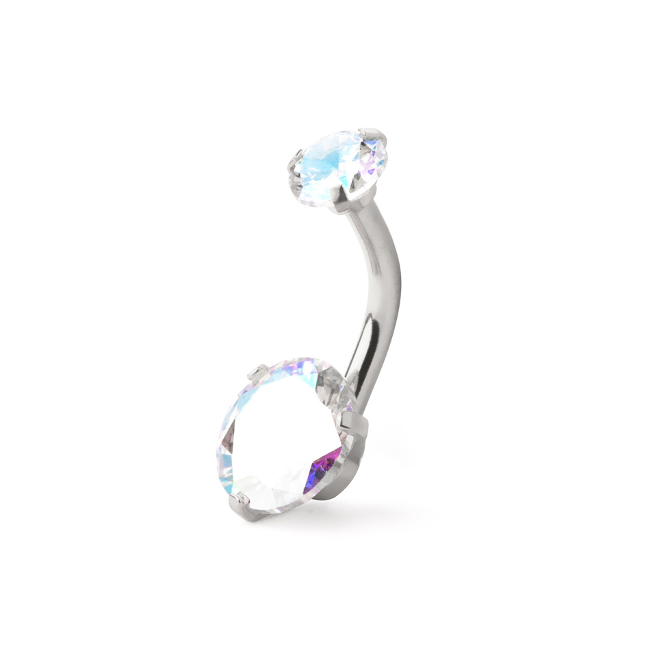 Nakit za pupak s unutarnjim navojem i kamenčićima u nekoliko boja