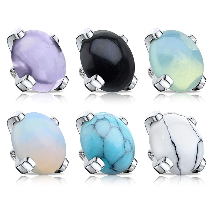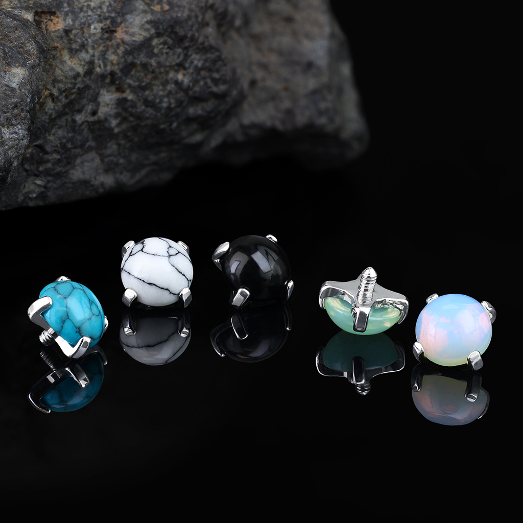 You can choose the gemstone you like the most from different exciting types, such as an opal or amethyst. Each stone type gives the dermal top a brand new look and expression. This gemstone measures 3/16" (5 mm), big enough to be an eye-catcher. However, this size can also be discrete if required.