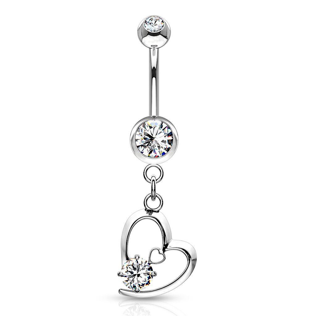 Piercing za pupak s privjeskom u obliku srca i kamenčićem