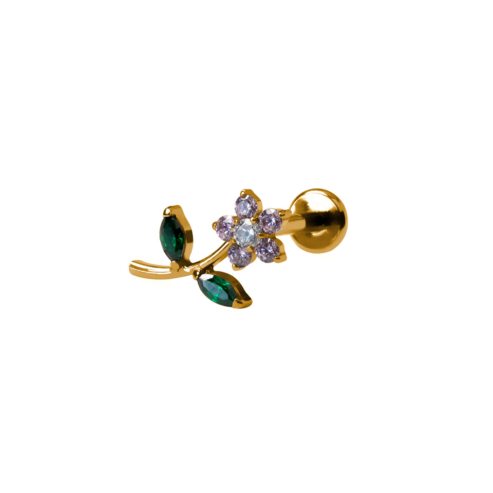 The cute flower flat back labret brings a touch of spring to your ear stack. A prong-set blossom with green leaf accents, it balances playful detail with everyday wearability. Made from 316L surgical steel, it’s durable, waterproof, and friendly for most skin types.