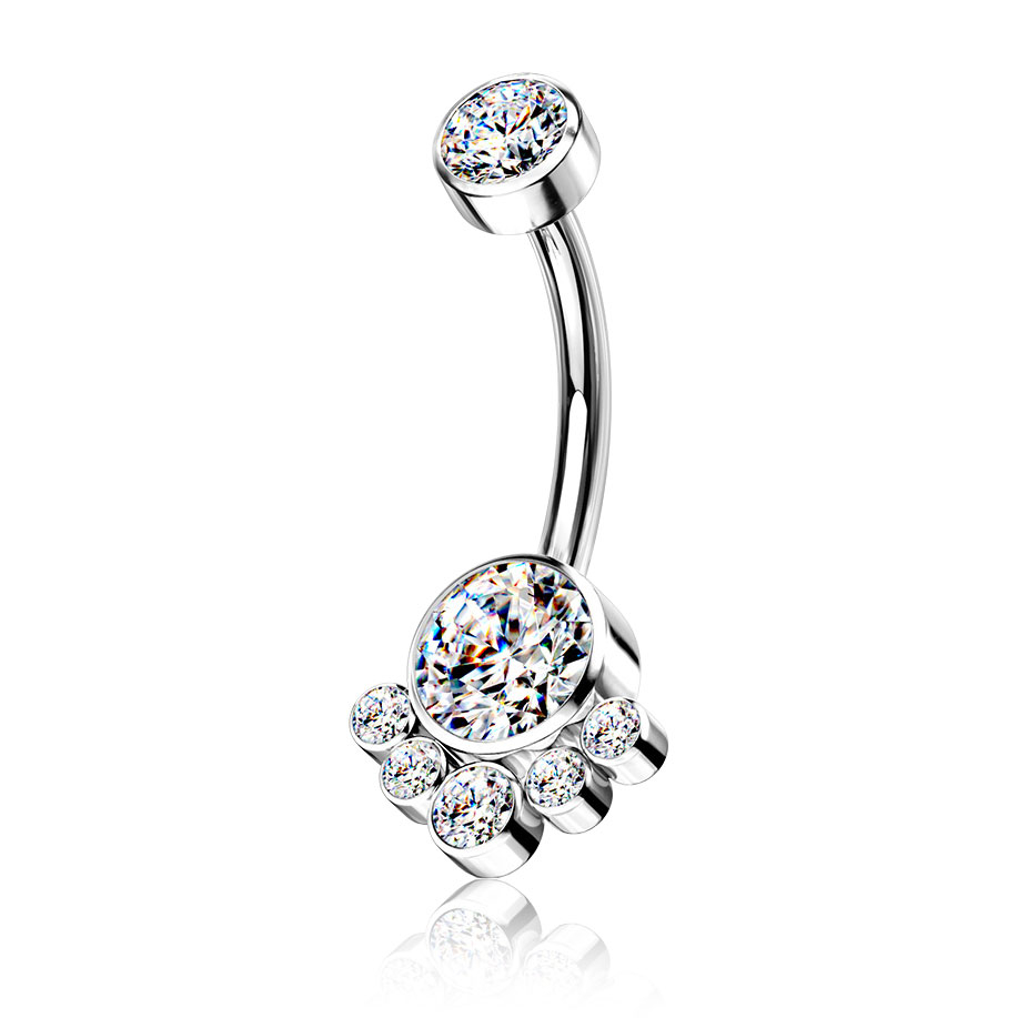 Naziv: Zaobljena šipkica za pupak od titanija s nizom kamenčića