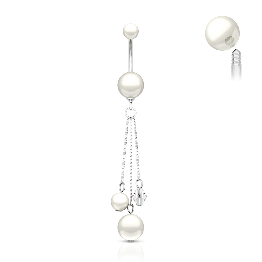 Zaobljena šipkica za pupak s akrilnim kuglicama poput bisera