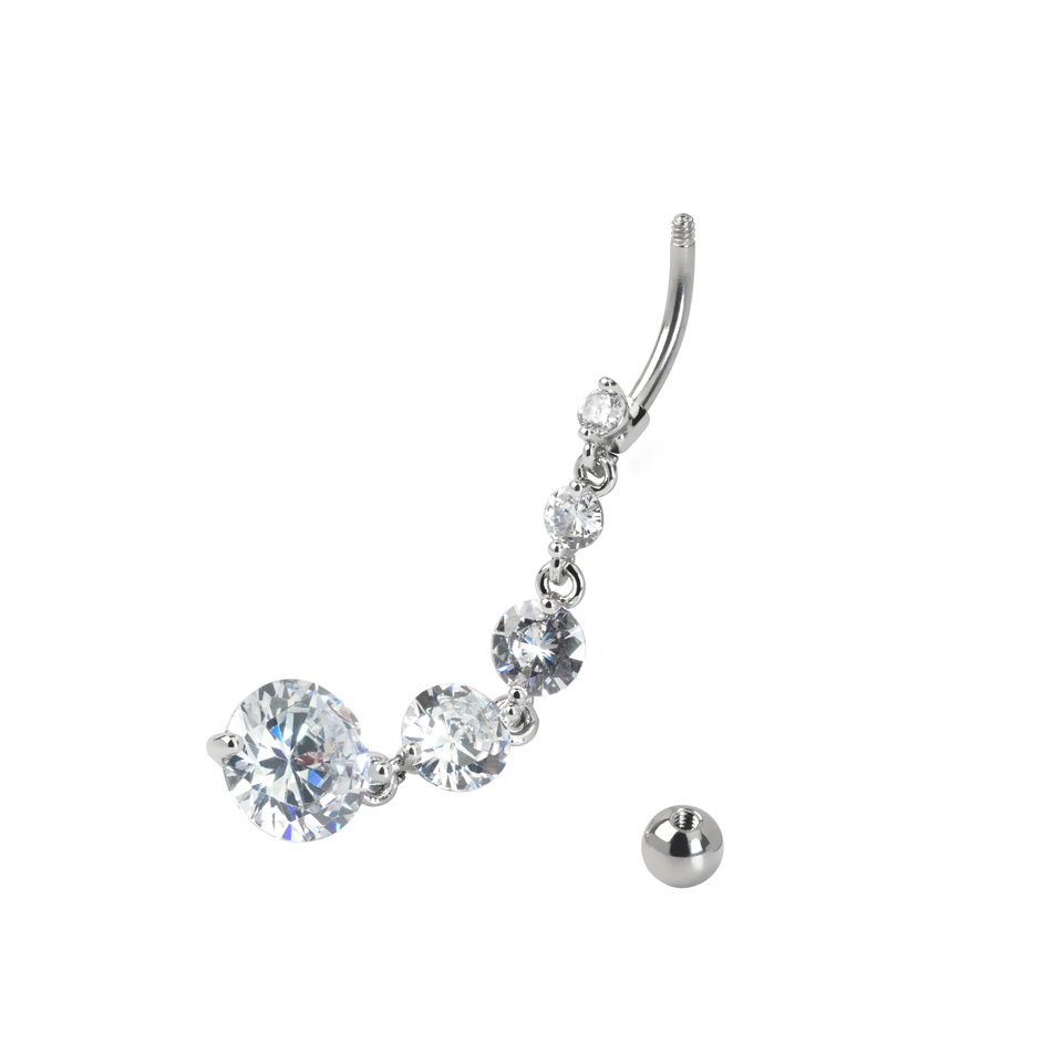 Zaobljena šipkica za pupak s dugačkim privjeskom
