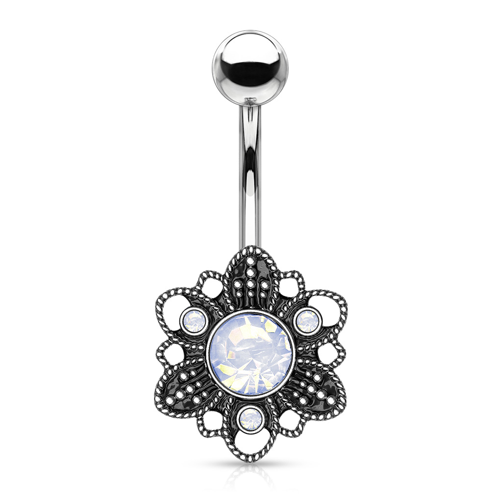 Zaobljena šipkica za pupak sa starinskim uzorkom cvijeta i opalitom