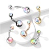 You know it from soap bubbles or when you see an oil slick on water. The highly glossy surface that changes color as the workpiece moves is fascinating to look at. The same goes for this belly button ring. The stones in the top and bottom balls change color like gasoline on a water surface. Since the image we have is a still image, the effect cannot be displayed. It requires you to look at it in person and turn it from side to side. Therefore, if you wear this belly ring visibly in the navel, the effect will be visible when you move.