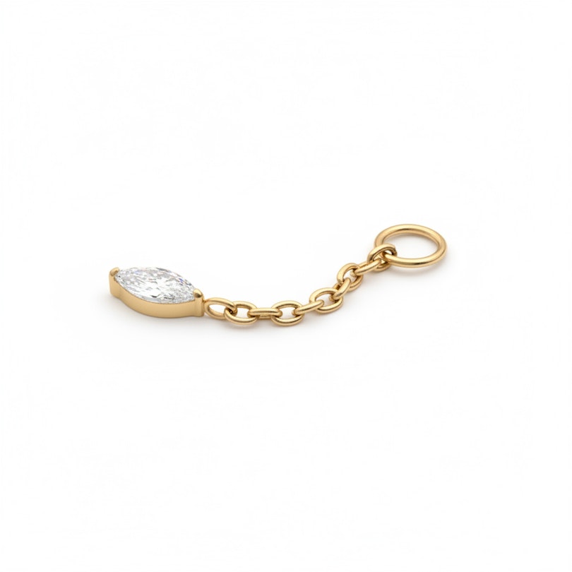 The charm with oval stone keeps things simple but never boring. Hanging from a fine titanium chain, the oval gem moves gently as you do, adding a bit of life to your jewelry without trying too hard. It’s the kind of detail that works anywhere; you can slide the hoop onto your favorite ring, as long as it's not chunkier than 3 mm.