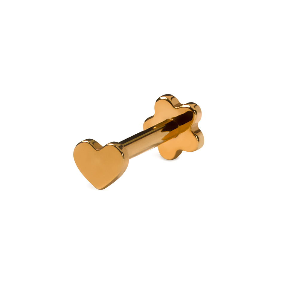 There are no bad angles with this double-ended titanium labret with flower and heart, which features a heart on the push-in top and a flower at the base of the stem. As it is made from titanium, it is both hypoallergenic and waterproof, meaning you can comfortably wear this all day long.