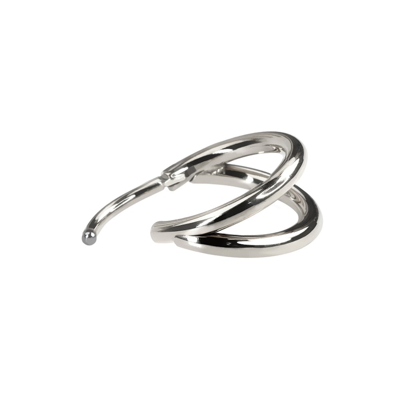 This simple ring has two hoops that come together as one to go through your piercing, giving the look of two rings.