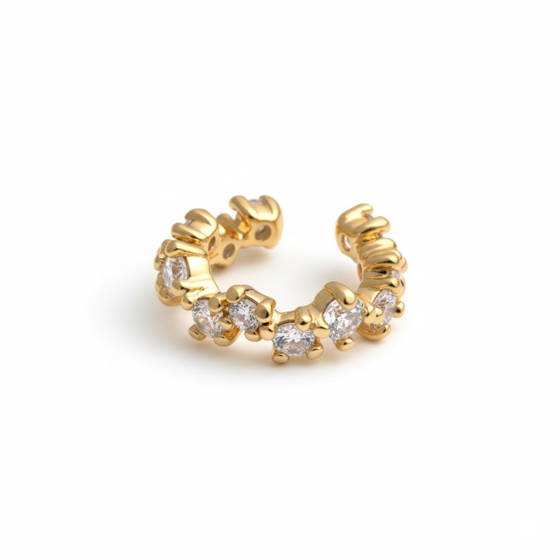 The ear cuff with asymmetric stones is designed to complete your look with a bit of edge. The uneven stone placement gives it a slightly offbeat feel, adding interest without making it look heavy or overdone.