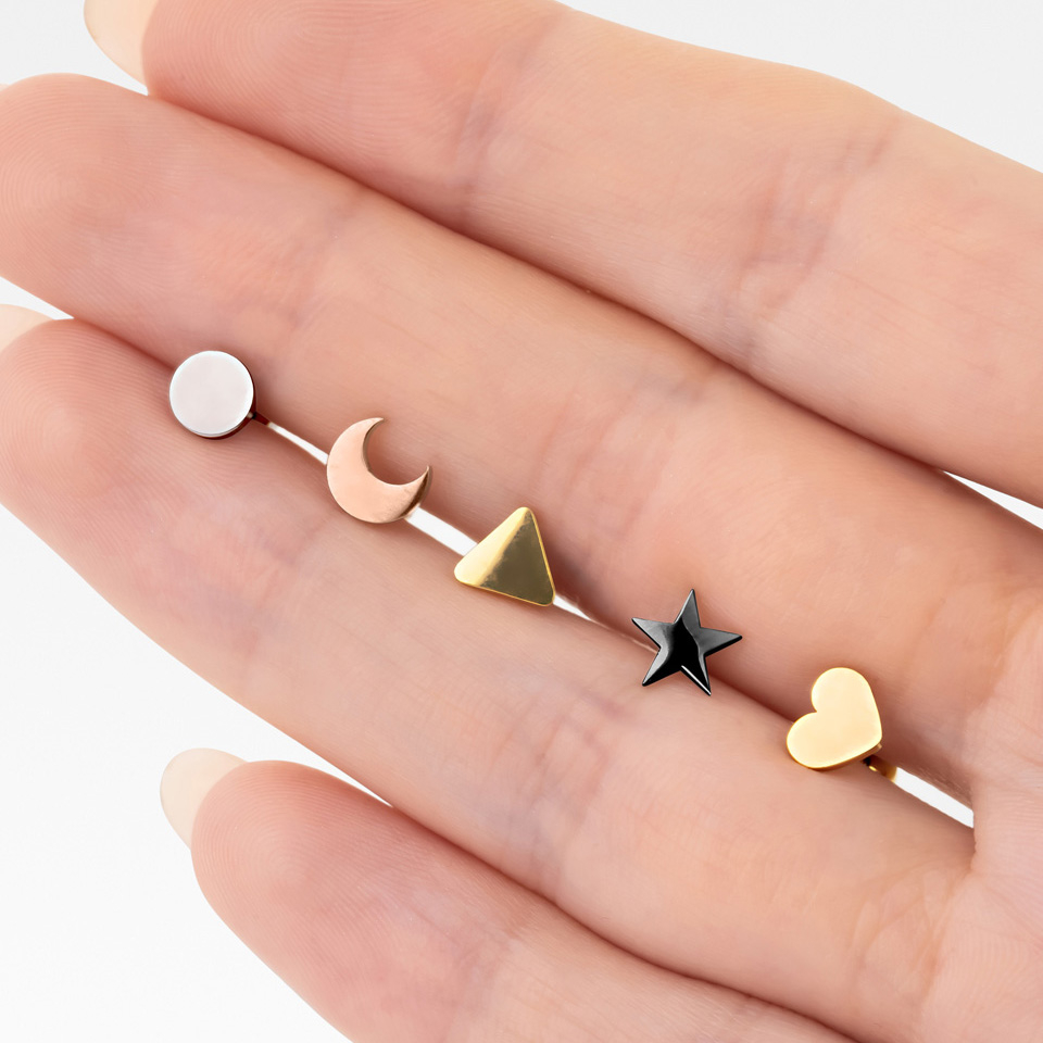 I ordered several types (heart, crescent moon, disk, star) in black, gray, and color-changing shades. Due to E52ter's review, I was a bit worried about the star (I wear it in my earlobe as a lobe) that it would poke, but fortunately, it has never poked me, it doesn't press while I sleep, so I'm very happy with them, it's easy to put them in and take them out, I am completely satisfied with them.