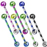 This model is available in 7 different combinations; only colors change. Apart from the colors, they are all 100% identical, including the length, the barbell's gauge, and the diameter of the balls. The barbell is made of surgical steel, and a color layer has been applied. If you wonder how these colors were applied, it's simple; the barbell's metallic parts were covered, and the rest was ionized. A smart and quick trick that gives it a different finish.