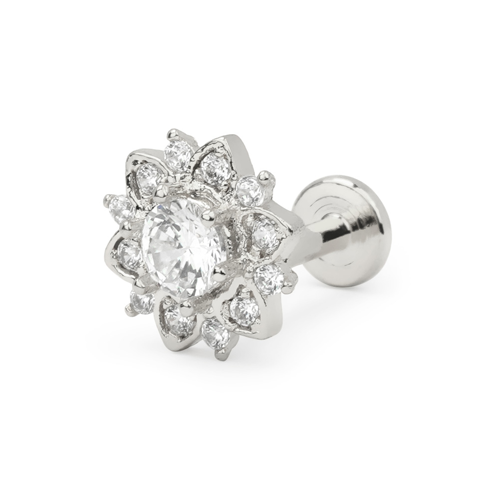 This labret is made of surgical steel. It's internally threaded, which means that the post has an internal thread. The top is equipped with a threaded rod that is screwed into the post, avoiding scraping the skin when you insert the labret into your piercing.