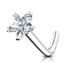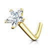 The stud has an L-shaped bar, bent with a 90-degree angle in the center. This detail makes it incredibly useful because it allows the stud to stay in the nose piercing without the risk of poking your nostril.