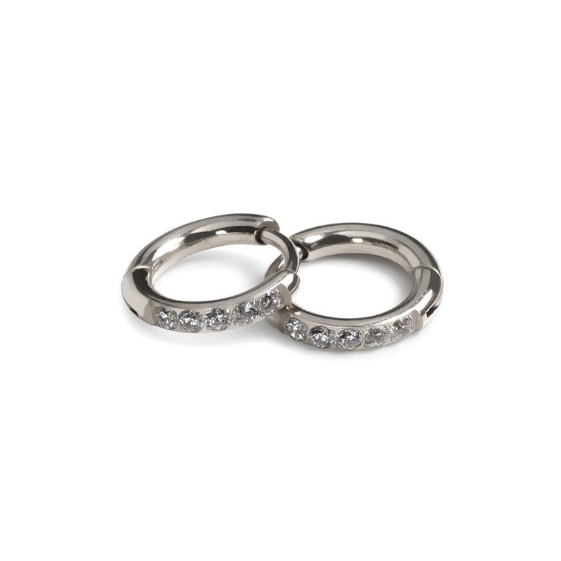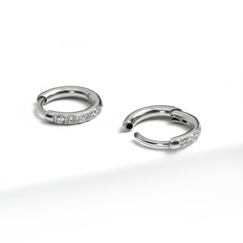 Discover your new essential: these premium titanium huggie rings with cubic zirconia stones. Crafted from high-grade titanium, they're incredibly durable, completely hypoallergenic, and lightweight for all-day comfort. The brilliant cubic zirconia stones add a captivating sparkle, and they're fully waterproof, so you never have to take them off. Sold as a pair, they're the perfect blend of luxury and everyday wear.