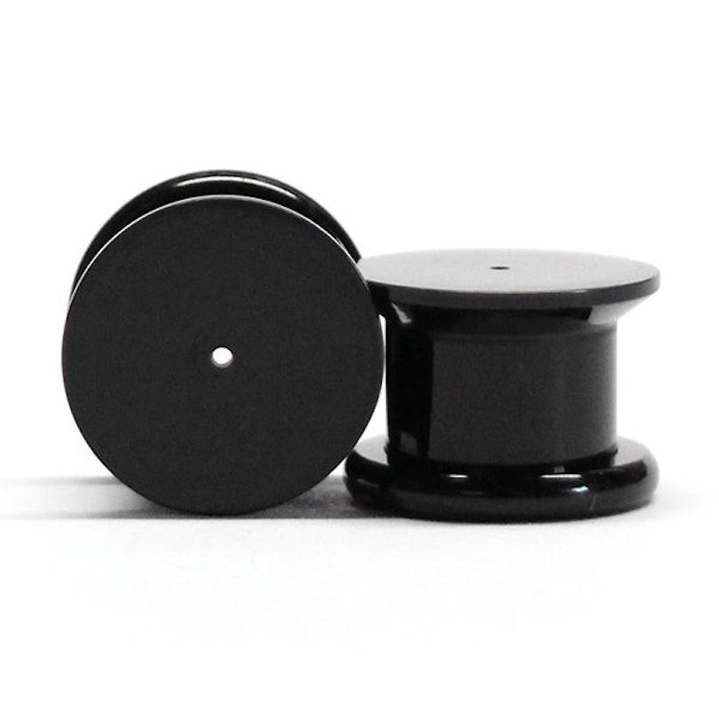 This plug is made of black acrylic and has an internal thread on the back that enables easy insertion and removal. The front side is completely flat and has a small hole of 20g (0.8 mm), a size that fits most earrings so that you can put them in this plug.