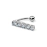 The pendant has five clear stones that are fixed in the structure by four prongs. The structure hangs from the top of the barbell, and it's articulated, so each stone can move, but not bent backward.