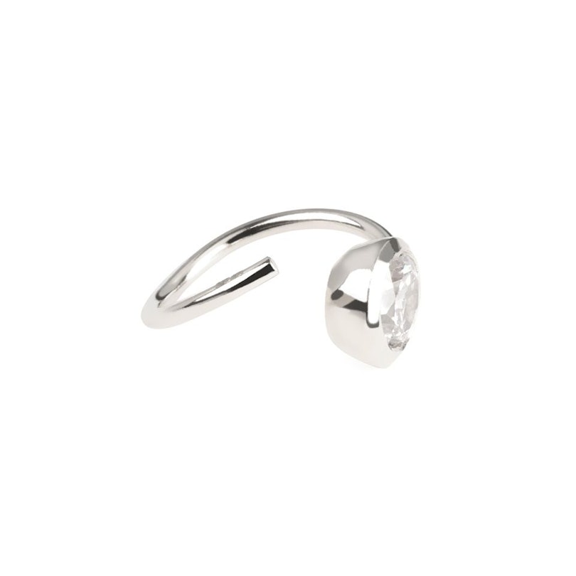 We introduce a simple yet original seamless ring made of 14-karat gold for you because you like high-quality jewelry. This ring has a gauge size of 20g (0.8 mm) and a diameter of 5/16" (8 mm). The ball is a beautiful crystal gem held by a half concave structure. The ball is fixed on one end of the ring, so you shouldn't worry about losing it. Twist the end of the ring slightly and slide it into your piercing, and then push it back closed. It's quick and easy.