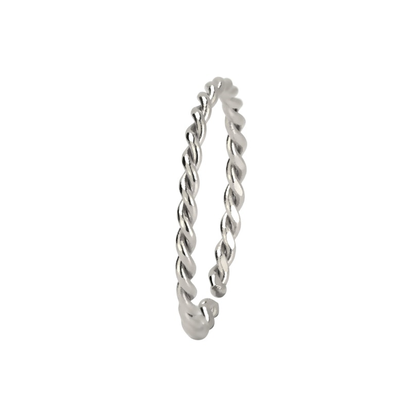 This ring is a different version of the popular seamless hoop. The normal one is a single piece of metal with connected ends. This new version consists of two metallic pieces that have been twisted, getting a braided effect. The ends have been slightly welded and rounded for easy insertion into the piercing and to prevent the parts from breaking apart.
