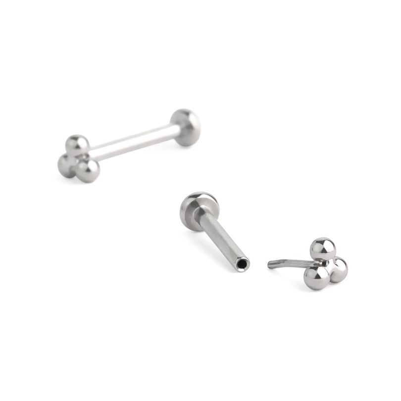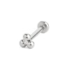 Labrets are versatile pieces you can wear in many piercings, and this minimalistic design goes effortlessly with other jewelry. Whether you are looking for a new addition to your ear piercings, or want a fun piece for your lip piercing, look no more. The triangular ball cluster top is 3 mm in size, and the labret stud comes in various sizes for you to get the best fit for your piercing.
