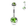 Belly button ring double jeweled made of surgical steel in a variety of colors.