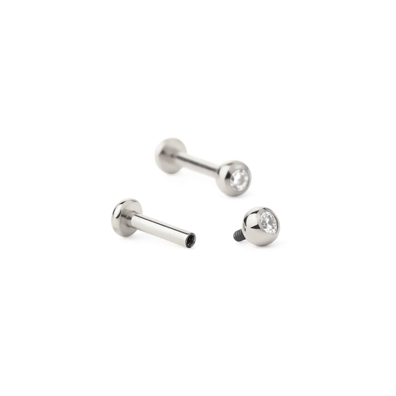 Labret made of titanium with internal threading and jeweled ball