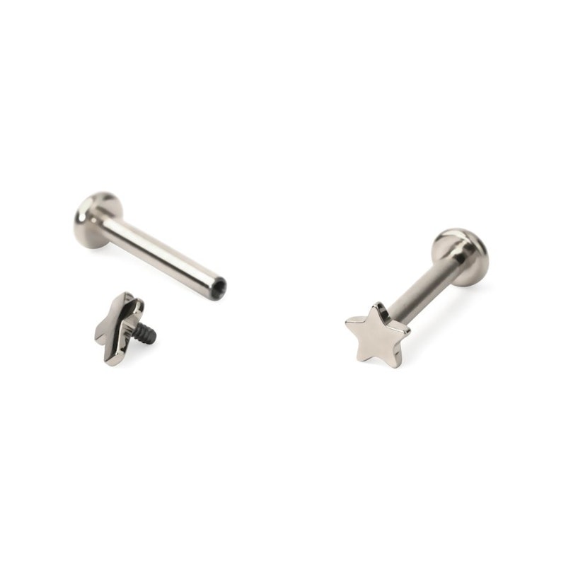 This labret has, as the name implies, an internal thread, which means that the thread is inside the bar. This also means that you have to screw the top down into the bar instead of over the bar, as it's often seen. The top can be selected from several different designs. Among others, we can mention a beautiful star, a flash of lightning, and a moon.