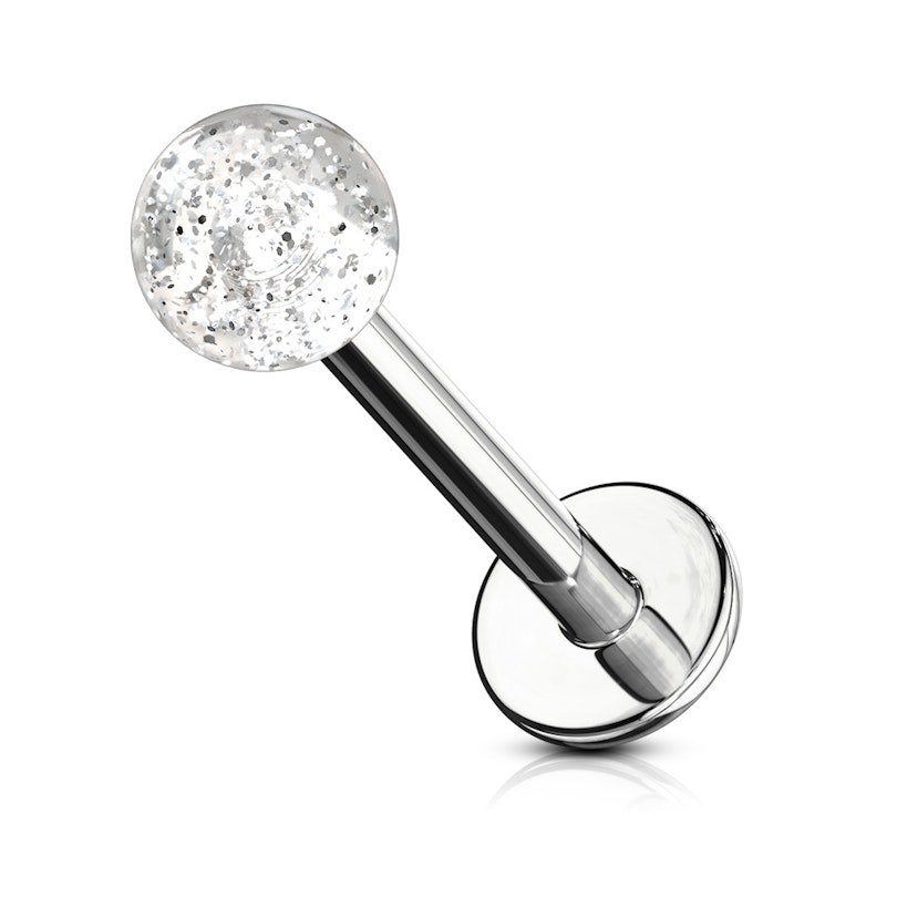 Super cool labret stud made of surgical steel with a small acrylic top ball. Acrylic is an extra gentle material that can be produced in almost every color. In this case, you can choose from the followings: