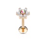 Name: Labret with internally threaded post and top flower charm-Rose gold-Aurora Borealis