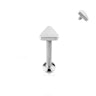 This model features a small triangular top. You can get this labret in the color of your choice from any of the available options you see in the picture above. You can also choose the length, depending on where the jewelry is going to be pinned in. If, for example, you got your tragus piercing done with a 16 gauge (1.2 mm) needle, a length of 1/4" (6 mm) will most likely be a good fit. The jewelry can also be used in the helix, where most people go for a labret of 5/32" (4 mm) in length. But, naturally, it depends on your anatomy and the location of your piercing. In general, as long as the bar gauge matches that of your piercing hole, there are no limits to where you can use this versatile labret.
