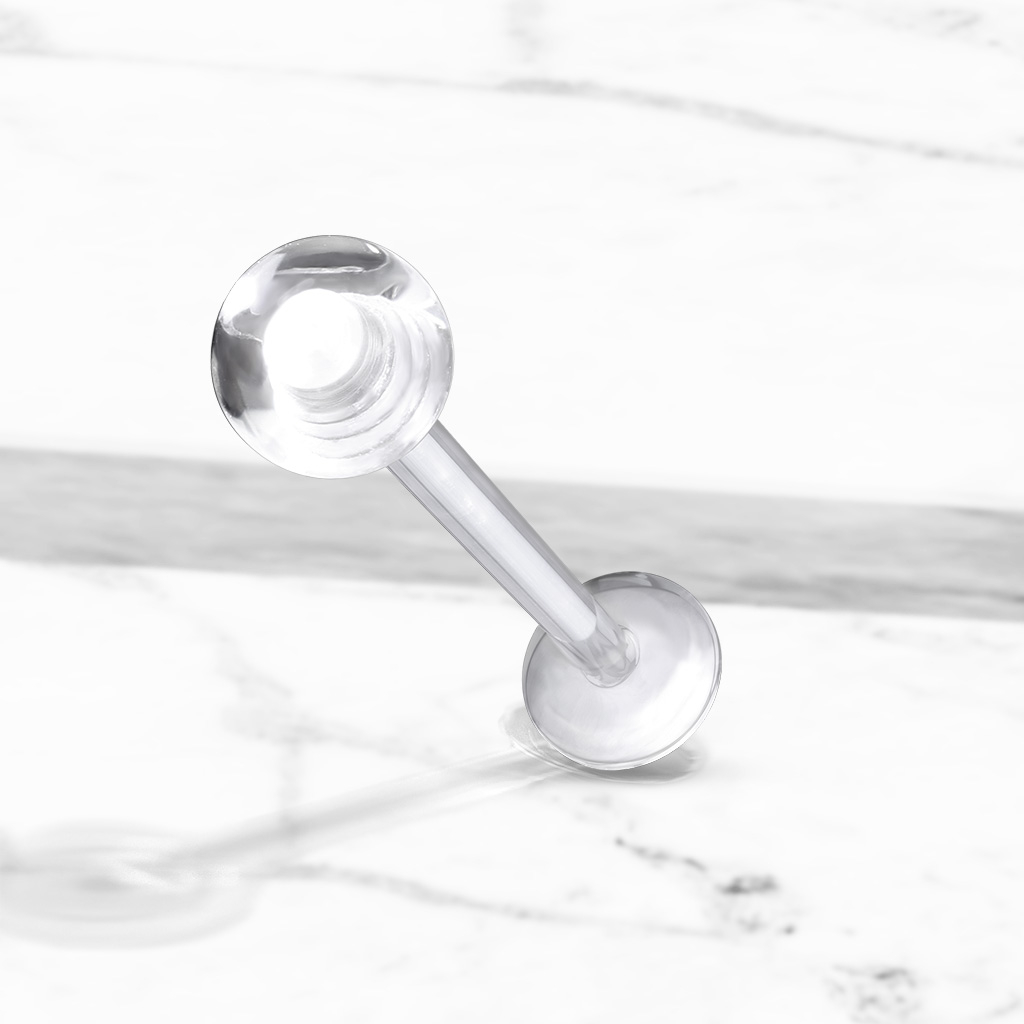 Furthermore, it's also easy on teeth and gums. For example, if you have a labret piercing in your lower lip made of harder materials, e.g., steel, it might hurt your teeth. But if it's made of acrylic, it won’t cause any problems, as this material is soft and bendable. That's why, as mentioned, this labret will protect your gums and teeth when bumping into them.