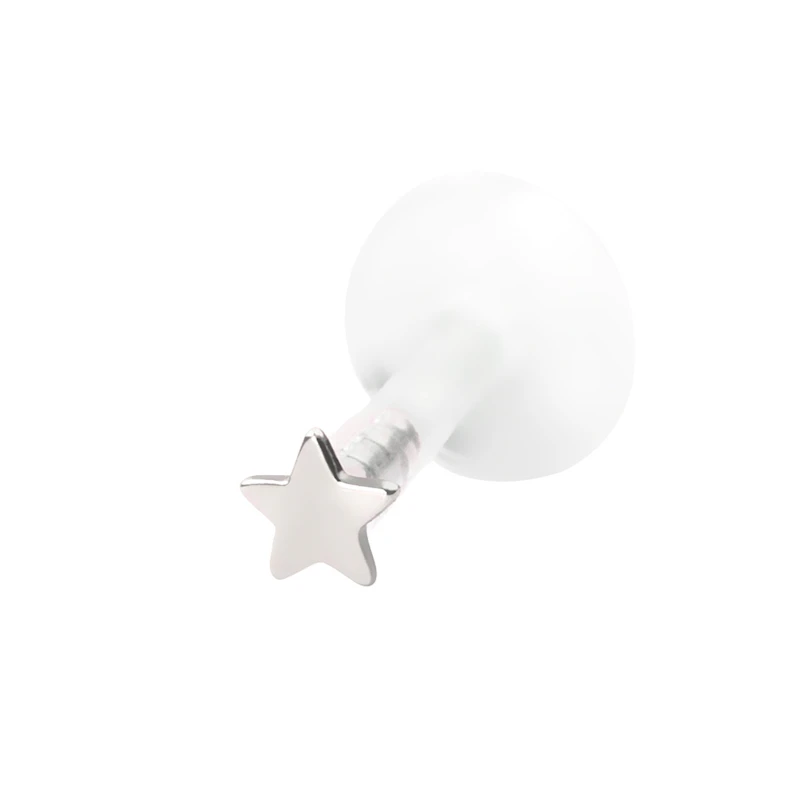 The labret we introduce here has a star top made of 14-karat gold. You can get it in either 14k yellow gold or 14k white gold. The post is made of PTFE, and the star stud is pushed into it to close it.