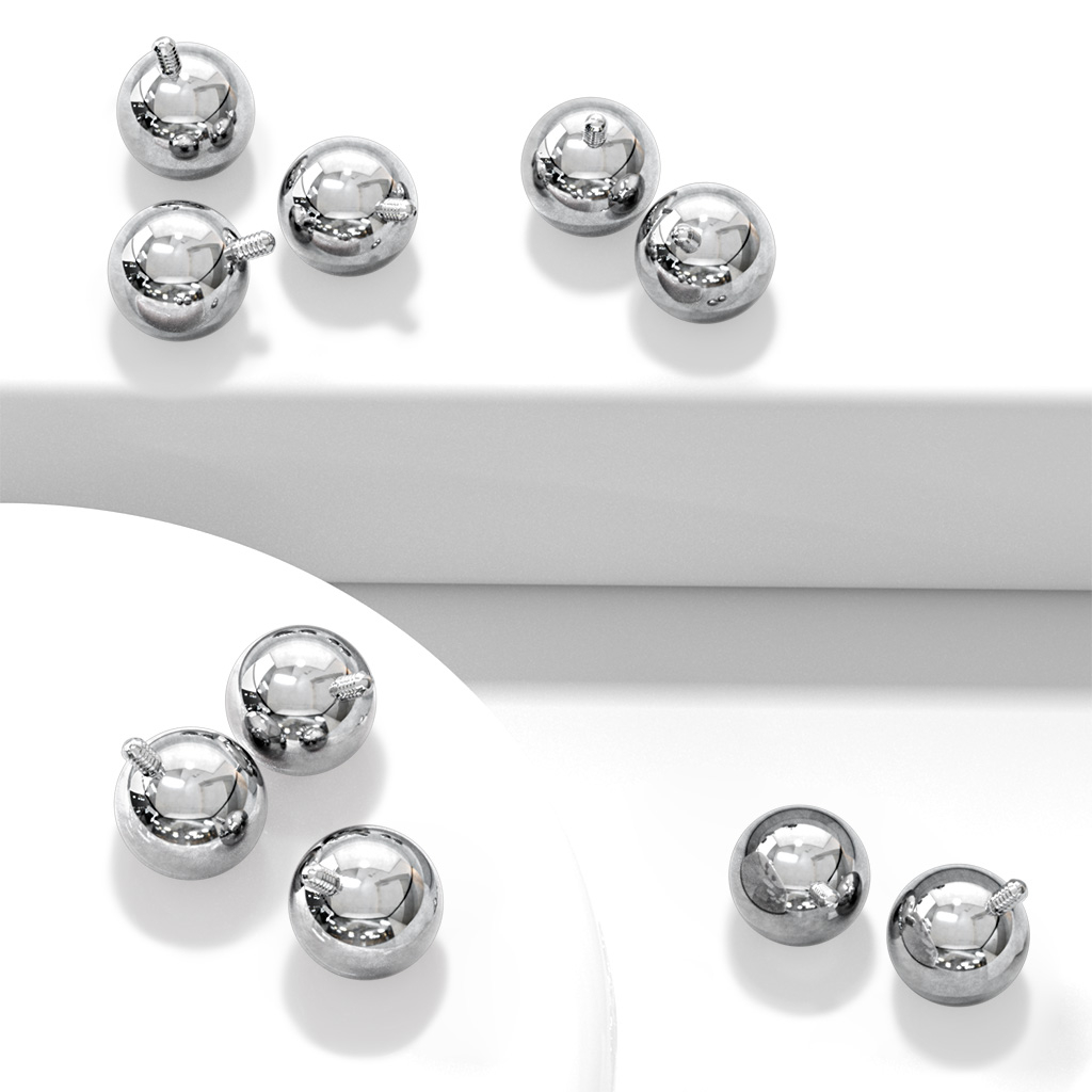 This ball is designed for internally threaded jewelry. It’s made of surgical steel, a material of elegant bright color. You can purchase it in different diameters and bar gauges, making the ball adaptable to different piercing jewelry, like circular barbells or labrets.
