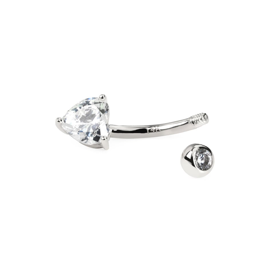 Belly button ring made of 14k gold with heart shaped bottom stone