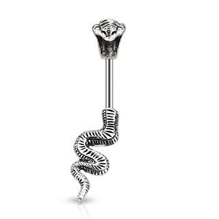Are you into rocker and spicy piercings more than princess jewelry? Discover this fabulous belly button ring with a majestic cobra. The cobra's skin is exceptionally detailed, and the head is slightly inclined forward. The cobra's head is set on the bar's top ball, while the body is lower down, which will be under your belly button.