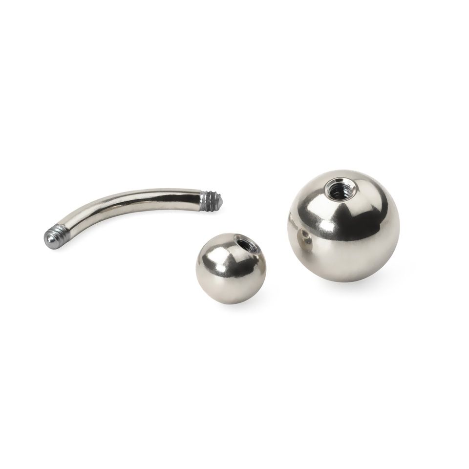 This belly ring in all its simplicity consists of a curved barbell with a top and bottom ball. The ball at the top is smaller than the one at the bottom, as you can see in the picture. You can choose from several different colors.