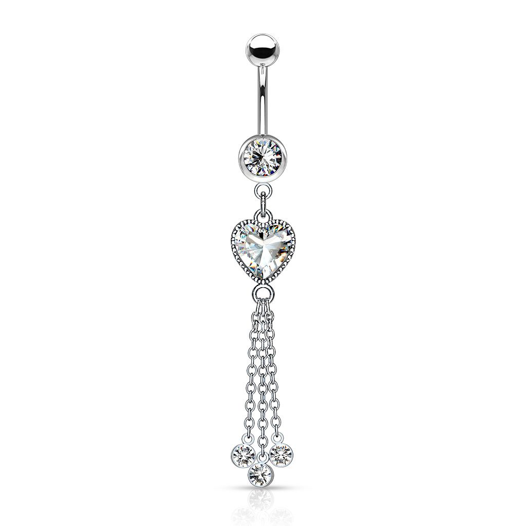 Name: Belly button ring with heart-shaped gem and chains