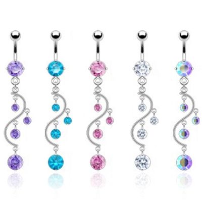 Name: Belly button ring with s-shaped dangle and stones