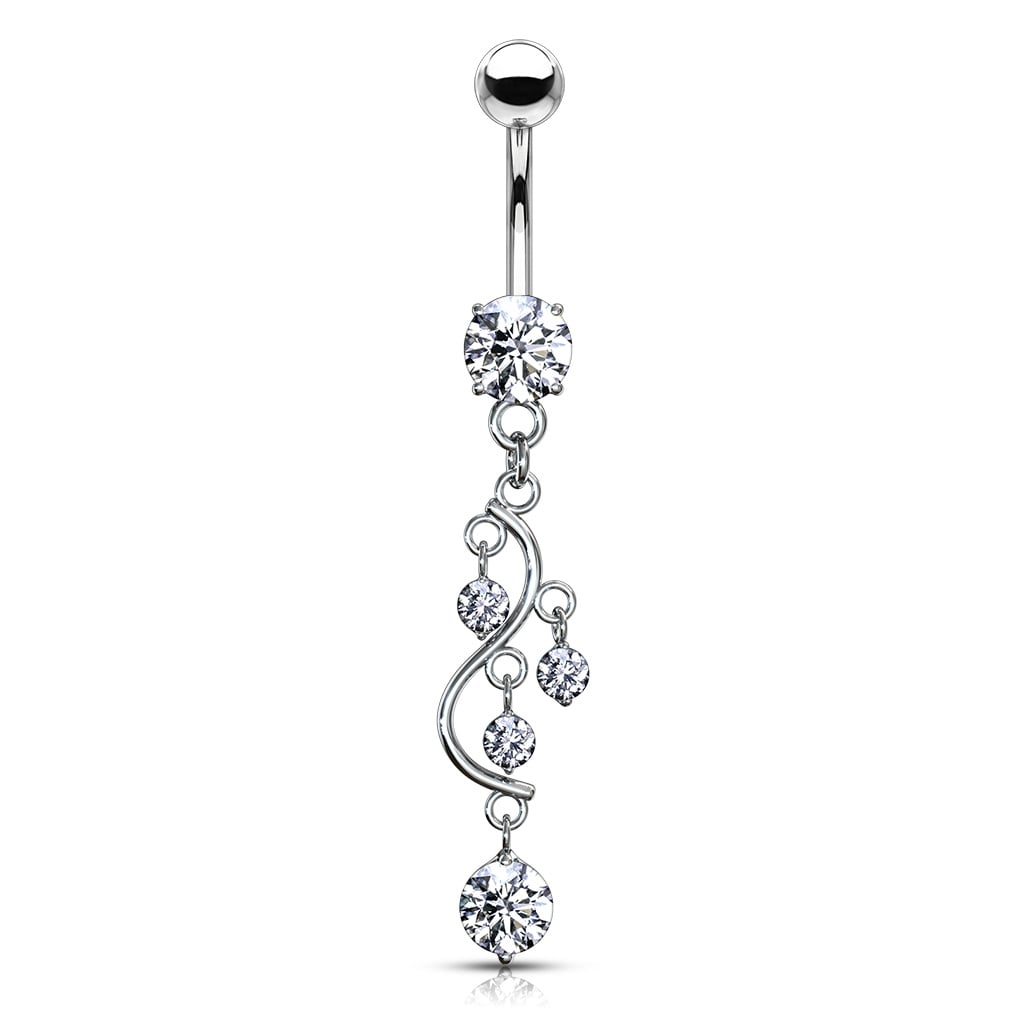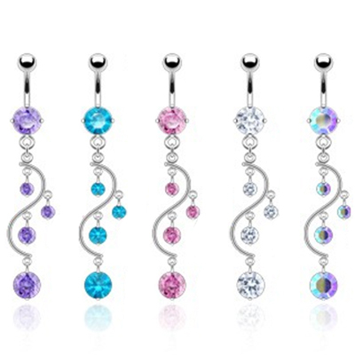 Name: Belly button ring with s-shaped dangle and stones