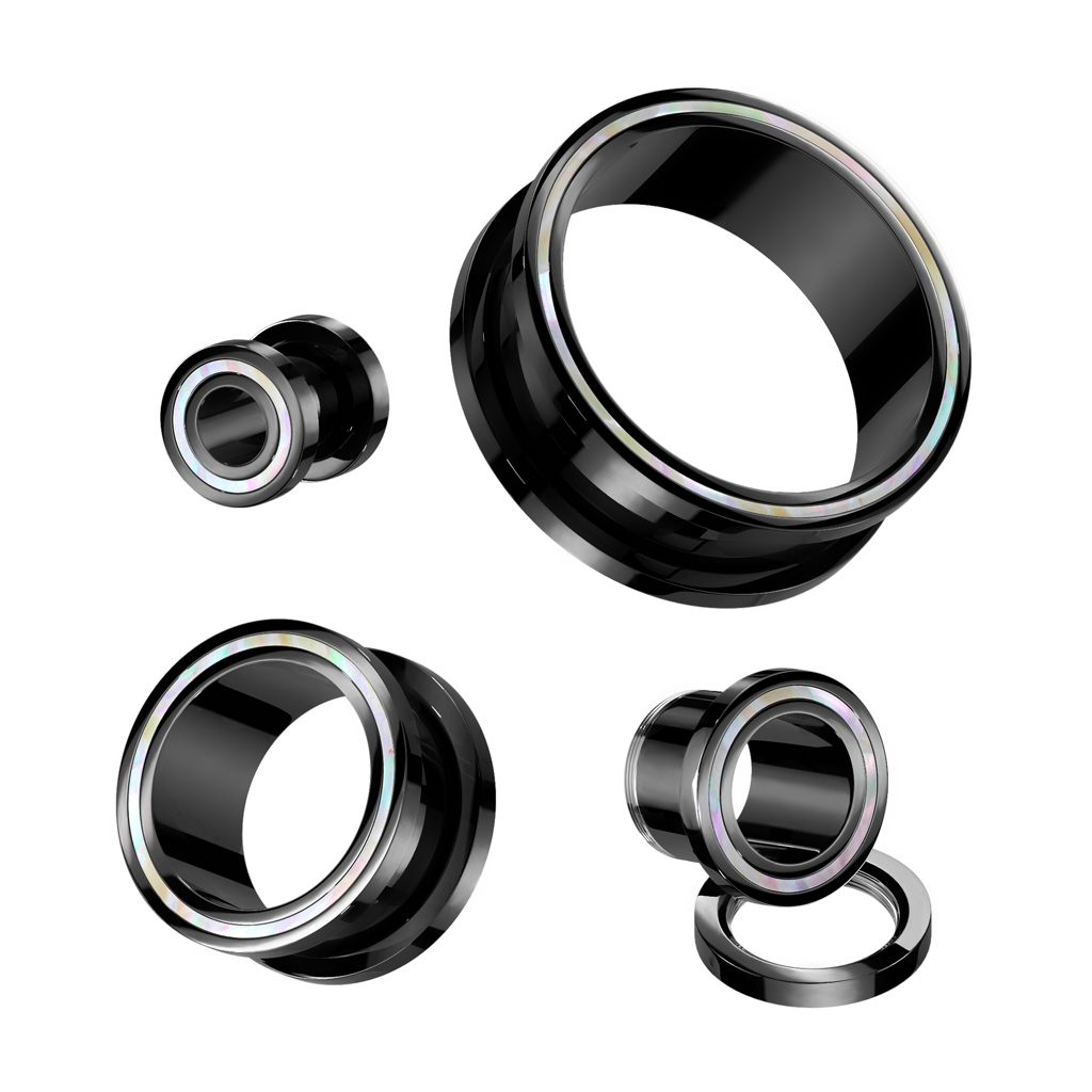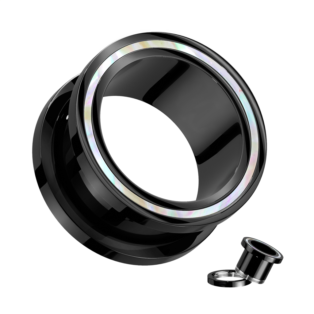 Who said tunnels have to be basic? This black tunnel with mother of pearl edge brings the drama with a bold and slick finish. Think of it as dark mode for your ears but classy.