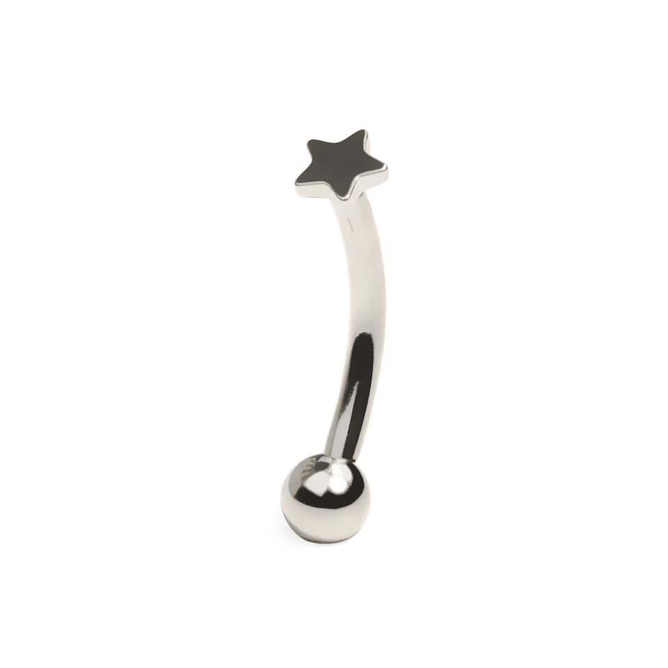 This curved barbell is suitable for a range of piercings, including the eyebrow, ear and lip. It features a star at one end and ball at the other.